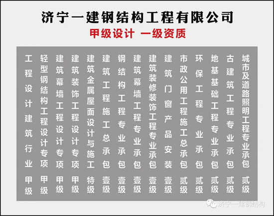 豪利777豪利777首页工程有限公司,隶属中煤建设集团,集团注册资金1.0158亿元人民币,下设工程部、设计部、技术部、质检部、生产部、安全部。拥有钢结构施工、设计双甲资质、制造壹级资质,幕墙施工、设计双甲资质,装饰装修施工、设计双甲资质,建筑金属屋面设计与施工特级资质,门窗施工壹级资质,并具有对外承包施工资质和劳务输出资质等九项国家甲级资质。主要从事钢结构网架工程、管桁架工程、装配式轻钢别墅工程、幕墙工程、膜结构工程及大型储罐工程的设计、生产与施工,公司相继承揽了机场航站楼、体育场馆、省级科技馆、大型厂房、高速路服务站、国家石油储库、加油站、储煤仓等各类工程,施工范围涉及全国三十多个省、市、自治区及直辖市,工程质量合格率100%,多年来荣获国内建筑界各类奖项100余个。