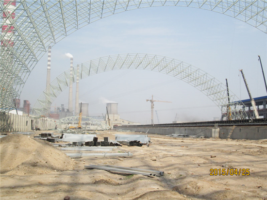 茌平信源铝业干煤棚网壳工程此工程总展开建筑面积约为8万平方米。其中网架重量约为3000吨,网壳跨度112米,矢高40.669米,总长度600米。本次工程施工难度极大,在山东省属于首屈一指的项目,而我司已经全部完成网架的车间制作、现场的拼装,为我司施工史上增添又一辉煌!
